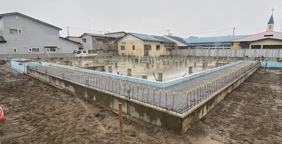 19日に断熱基礎完成。 延べ床面積900m2弱。