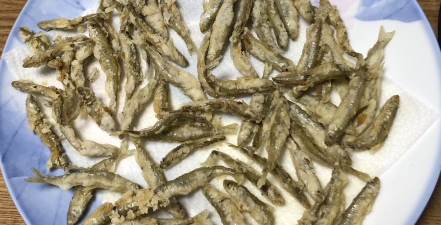 大類さんが氷の下のワカサギを釣ってきた二皿のワカサギ。 おいしい。