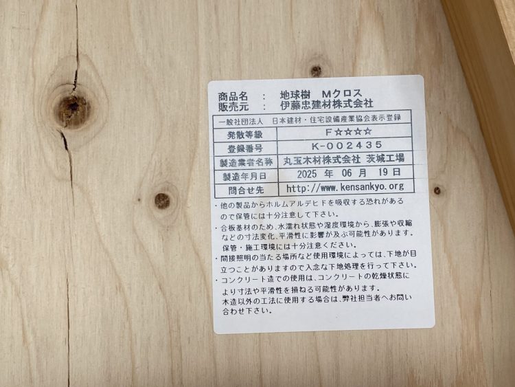 合板の表面にライナー紙を張り付けた.クロス下地用合板。