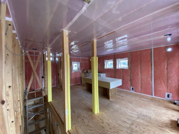 塗り壁の「そとん」の下地はタイベックシルバー。