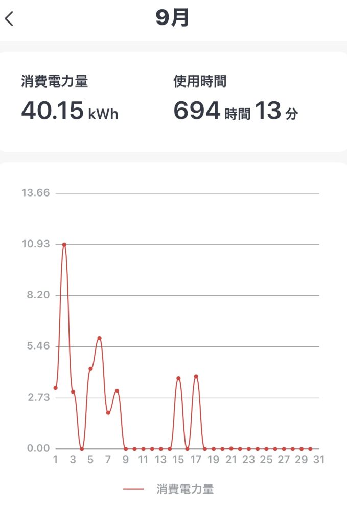9月18日から冷暖房消費電力は0。9月18日から冷暖房消費電力は0。