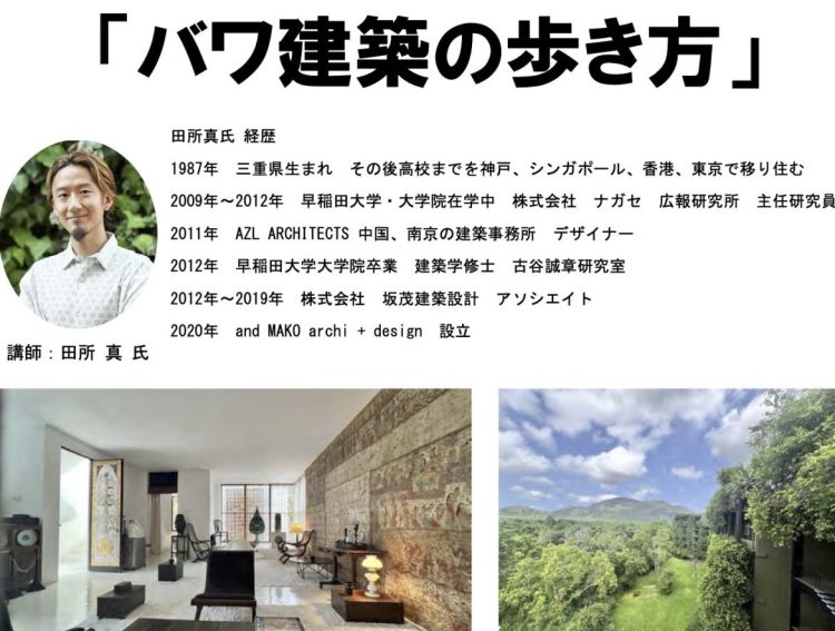 25日は建築家協会秋田地域会の例会は建築家の田所真さんをお迎えしてジェフリーバワのセミナーだった。