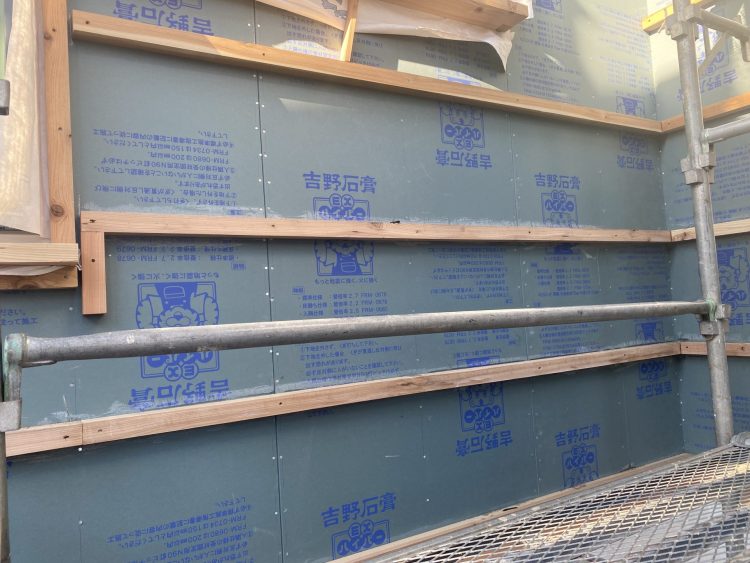杉板貼の下地にモイスからEXハイパーボードを使うようになった。