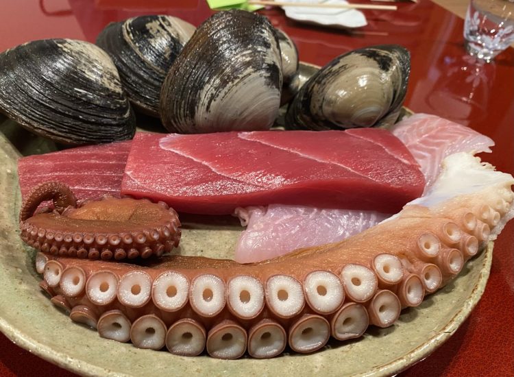 札幌の齊藤さんが太陽光パネルと熱交+ダクトエアコンの打ち合わせに来た。 お土産は札幌市場からの鮮度が高いおいしい刺身。 これに、刺身とキリタンポが出てくる。 座卓は七々子塗りの津軽塗り。