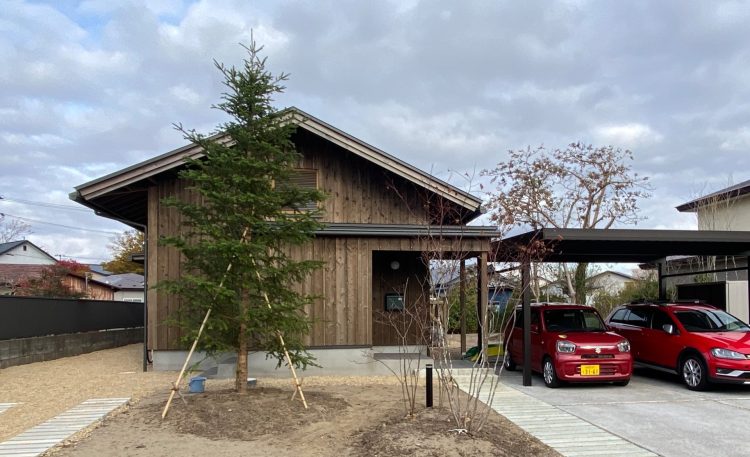 今回は、敷地の広さから森の中の樹立ちに囲まれた風情に融合するように、