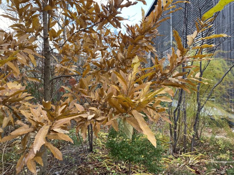 他の紅葉樹は落葉しているが、22日でクヌギまだ落葉していない。