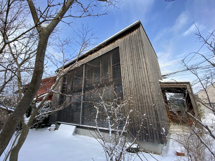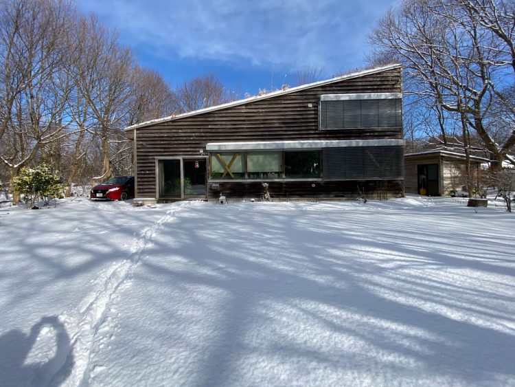 1月2日のアトリエと自宅。 珍しい青空(太陽)。