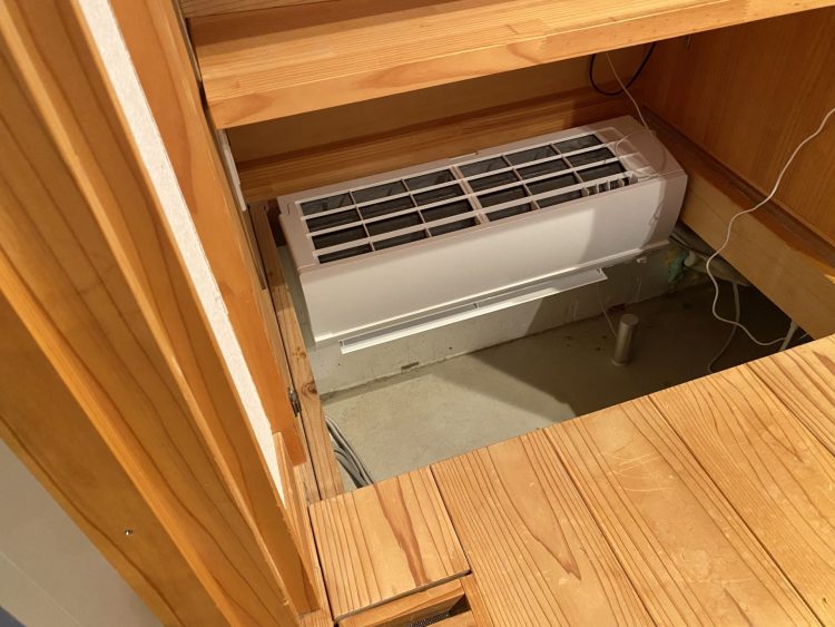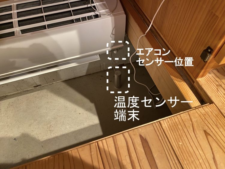 エアコンのセンサーに近い真下に居室のセンサーの端末を置く。