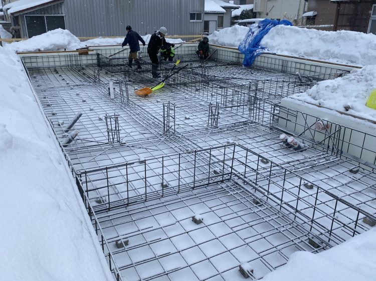 1月30日のQ1住宅豊祥岱の基礎配筋の蒸気融雪。