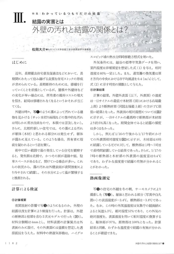 「外壁の汚れと結露の関係とは?」松岡大介(ものつくり大学)