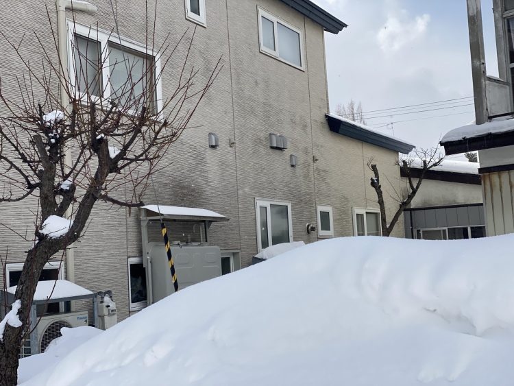 自宅の近所の北側のサイディング壁の汚れは藻。