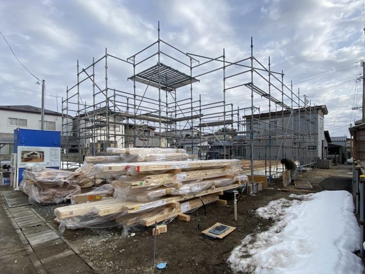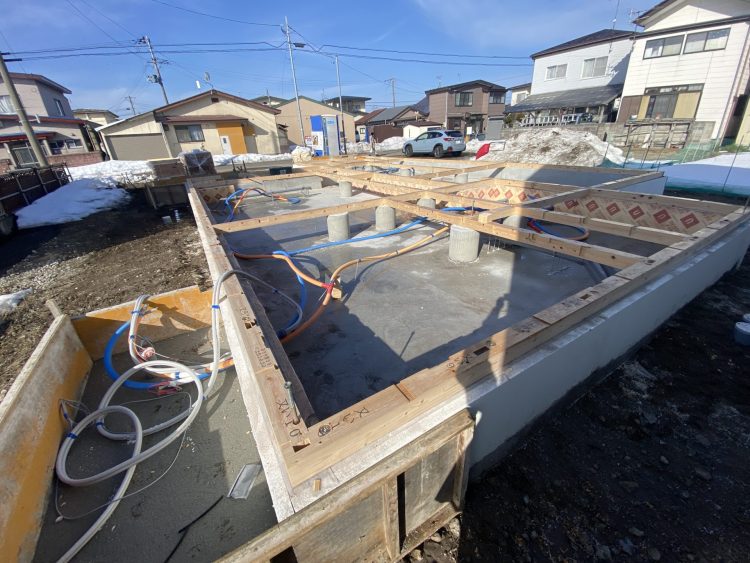 22日の長屋のQ1住宅豊祥岱の現場状況。 土台を設置した。 24日の現場状況。