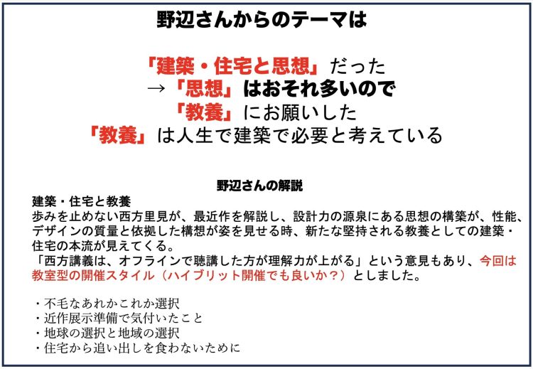 西方設計が考え、研究し続けてきた西方流建築論を公開しています。