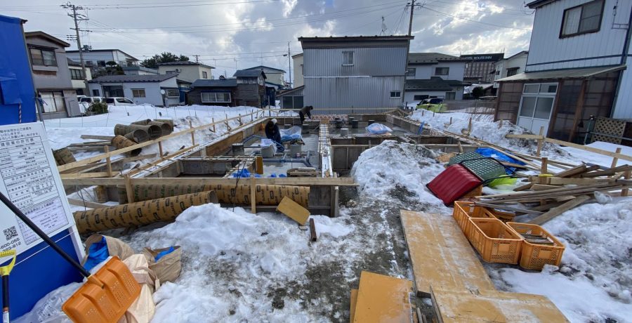 1月30日のQ1住宅豊祥岱の基礎配筋の蒸気融雪。