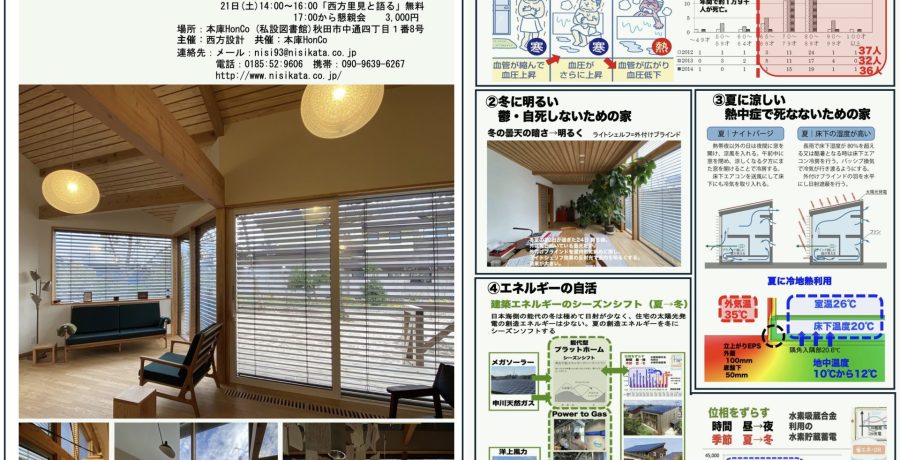 「死なないための家と近作」展の会場は 本庫HonCo本庫HonCo (私設図書館)秋田市中通四丁目1番8号 です。 設計:難波和彦 「箱の家」シリーズ (西方設計は工事監理の手伝い) 室内 南側外観 北側(道路側) 設計:難波和彦 「箱の家」