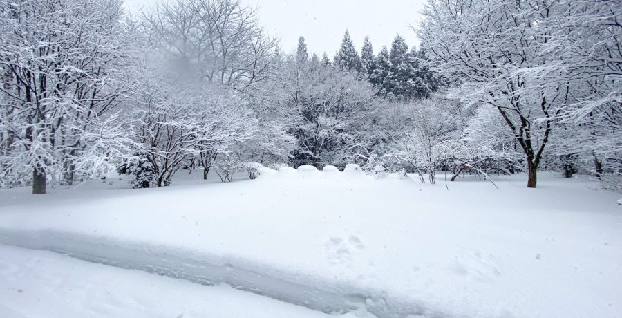 太陽が欲しい。 昨日27日のアトリエの庭の寒波中の冬景色。 積雪50cm。 街中は除雪から排雪が厳しい。