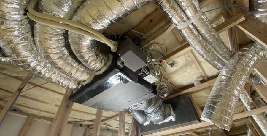 大きな家なので、暖冷房は[1階床下エアコン+2階ダクトエアコン]に全熱熱交換換気。 2階は個室が多く4室なのでダクトエアコンにした。 1階はオープンな間取りなので床下エアコン暖冷房にした。 全面低温輻射の床下暖房の心地良さは捨てがたい。 ダクトエアコン ダクトエアコンのリターン口 一種全熱熱交換換気システム