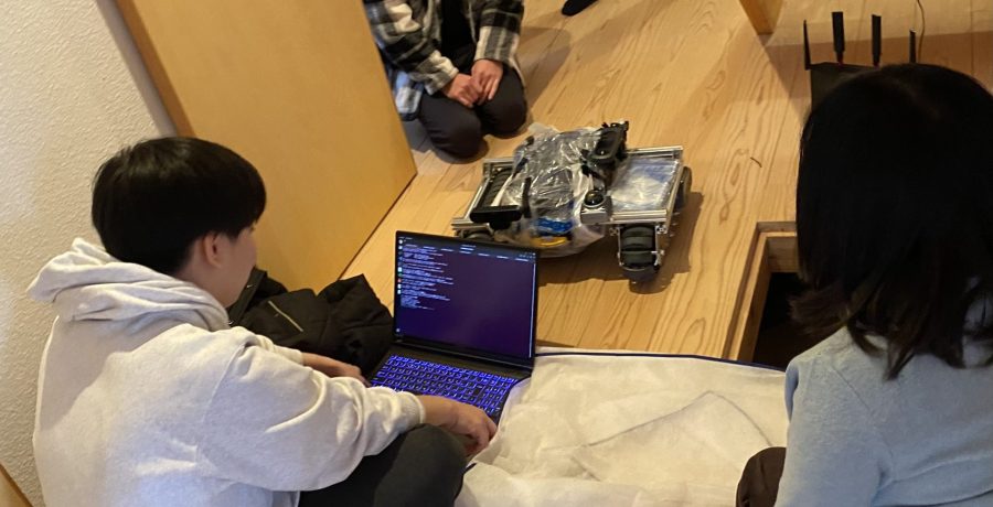 秋田県立大学の大塚先生と伊藤先生と学生二人が床下診断ロボットのデモ調査を自宅で行った。