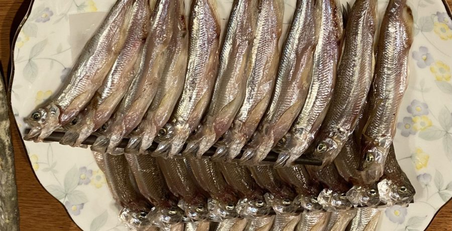 札幌の齊藤さんのお土産。 鵡川(むかわ)の本ししゃも、紅シャケ、ミズタコ、他。 我が家で食べた。 おいしい、おいしい。