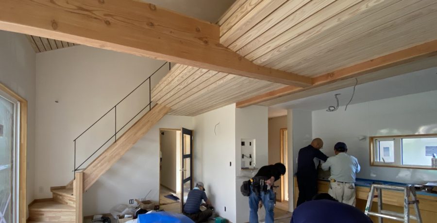 20日が事務所の完了検査、 22日が検査期間の完了検査。 外付けブラインドがまだ設置されていない。